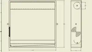 While the design has not been tested as of yet, the still in this project should, in theory, work as both a batch and continuous still. It also provides the option for an actively controlled air vent to be added to help control the internal temperature. Figure 1 below shows the still's basic design and proposed dimensions. The internal dimensions were chosen based on the requirement of the still to be able to process a batch size of 1 Litre. Based on standard diameter plastic pipes and what were deemed reasonable dimensions for construction, an optimal pipe diameter and length were chosen to be 3 inches and 20 inches respectively, and as such internal dimensions measure 20" x 20" x 4.5".