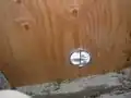 The house that the heater was the be attached to was occupied by renters, so we couldn't put any holes into the wall. Instead, I hung a sheet of plywood over the outside door frame of the back door of the garage (nobody uses that door). This is to be a temporary wall for testing purposes. Since I plan on putting the heater in my next house, I didn't want to permanently place this heater at the testing house. I cut two 4 inch vent holes and connected the box to the wall with aluminum ducting. On the side of the plywood facing into the room, I placed vent covers over the holes. The idea is to leave the door open on sunny days, so the heat releases into the room. At night and on cloudy days, you can shut off the system by closing the door.