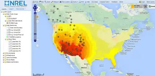 The Solar Prospector is a mapping and analysis tool designed to provide access to geospatial data relevant to the solar industry in general and for the siting of utility-scale solar plants in particular. The application provides easy access to solar resource, land ownership, environmental, administrative and infrastructural data to help assess solar development potential within the United States. The Solar Prospector also provides the ability for users to download solar resource data in a variety of formats for further exploration and analysis. The tool has been online since 2009 and has been updated periodically since that time with new data and new analysis capabilities. We are excited to announce a major new update detailed below.