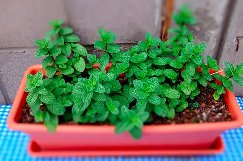 As with most mint plants, mint can grow prolifically through underground rhizomes and, as a result, can become invasive.[2] This tendency can be dealt with by either planting it in a large container or planting it in a container without a base (bottomless base) that is buried in the ground to its rim; this helps to prevent the mint from spreading.[2]
