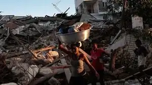 A young woman who has survived the devastating earthquake in Haiti on 1/12/2010 carries what she has managed to salvage from the ruins of what was once her home using a metal wash basin, which if parabolic in shape and mirror finished, could also function as a solar thermal water pasteurizer, solar cooker and even a satellite dish internet up-link antenna for relaying news and vital communications.