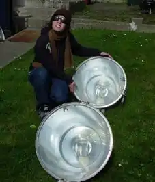 Stadium light reflector hoods function as solar cookers and drinking water pasteurizers. When aimed at the sun the parabolic reflector works in reverse, by focusing concentrated sunlight to a black pot set approximately where the light bulb normally is. The reflectors are readily found in industrialized societies, in cities that have athletic stadiums. The lighting systems are replaced about once every 15 to 20 years and the reflectors can be obtained by contacting the managers of the sports stadiums and by checking at local recycling centers and metal scrap yards. The reflectors hoods are ready to function as parabolic solar cookers without significant modification. In non developed countries these parabolic reflectors could be used as templates for teaching villagers and refugees how baskets and ceramic pots can be made in that parabolic shape, lined with reflective materials and used as solar cookers and water pasteurizers.