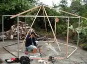 In the Fall of 2006 Russell Kramer began a project to build and live in a yurt in a neighborhood known as Sunny Brae of Arcata, CA. Low materials usage, low cost, excellent feng shui, and outer space withstand-ability were primary goals. Humboldt County is rainy in the winter and spring, so designing to withstand weather has been a front-and-center challenge.