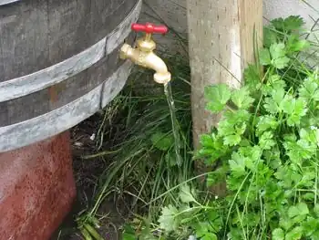 - Turn the barrel on its side and attach a hose to the nozzle of the barrel.
