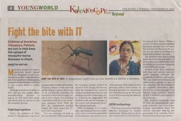 - Source reduction including elimination of water logging and avoidance of indiscriminate disposal of broken bottles & vessels, coconut shells, used tyres etc in open yards to prevent formation of micro water bodies by rain water are the measures suggested by Health Authorities through their pamphlets & news paper ads. What GEM Technology proposes is just contrary to this. How can you be right then? Are not the experts more likely to be correct?
