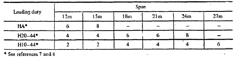 The oldest bridge of this design in existence is that at Nyeri, which is in good condition, but which has not carried more than a handful of commercial vehicles per day and a similar number of light vehicles throughout its life. The available evidence therefore limits the known safe utilisation of this design to very lightly trafficked roads carrying not more than 1000 heavy vehicles per year if a life of 20 years is required, or to somewhat more heavily trafficked roads carrying say 5000 heavy vehicles a year if a life of less than five years is acceptable. The numbers of cars and light commercial vehicles are not likely to have an appreciable affect on the life of this type of bridge.