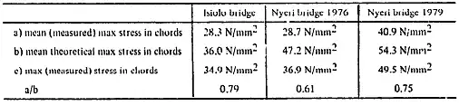Analysis carried out at the University of Nairobi suggests that the steel used for the Kenyan bridges may be classed as a grade 43, according to British Standard Specification BS 4360: 1972, Specification for weldable structural steels.[3] Values of permissible stresses in the steelwork given by British Standard Specification BS 153: parts 3B and 4: 1972. Specification for steel girder bridges,[4] (assuming that the steel meets the requirements of BS 4360[3]) are: