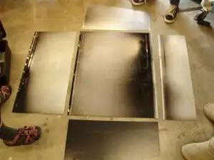 Slide the two side wall insulation pieces into place, then slide in the remaining wall of the box. Rivet the final wall into place.