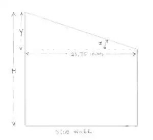 The metal can be cut using metal shears. The dimensions will vary, depending on the angle that the glazing will be set at. The base and front wall likely will be the same dimensions as The Solar Swing’s, while the two side walls and the back wall will vary. Base – 23.75” x 30” Front Wall – 9” x 30” Two Side Walls – 23.75” x 9” x 24.25” x 14” Back Wall – 14” x 30” Use trigonometry to determine the height of the back wall. An imaginary triangle is created if you draw a horizontal line from the upper corner where the front wall and side wall meet across to the back wall. The base of this triangle is the width of the oven (23.75”), and the angle z is the angle that the glazing will be set at (see Figure 2). The height of the triangle (Y) can be determined by the following equation: Y = 23.75 * tan z The height of the back wall should be: H = 9 + Y Lay out the five pieces once you are finished (Figure 3).