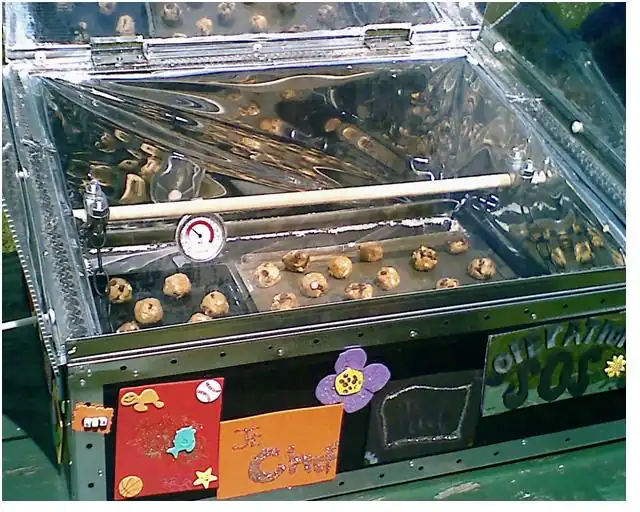 Once the oven has heated up, the glass lid should be lifted by its handle, being careful not to touch the panels or the glass. Place the cooking pans in the oven. Food code policies followed by the school must be followed when using The Solar Swing. For example, according to California Retail Food Code, foods containing raw eggs must be heated to an internal temperature of 145 degrees Fahrenheit for at least three minutes. Be sure that the foods being heated are heated at high enough temperatures and for long enough durations.
