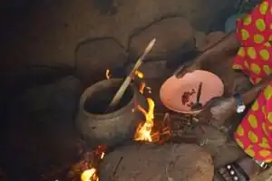 Rural cultures around the world depend on the three rock fire for their cooking needs. Although more efficient than the open fire (in which the cooking pot or container is generally hung well above the fire), it is still an inefficient method of cooking and thus places the environment in jeopardy. This as over-harvesting of fuel for cooking can cause damage to vegetation and wildlife. Understanding traditional cooking methods can help explain why improved solid biofuel stoves are an important appropriate technology. "Most cooking fires are surrounded by three of more stones, bricks, mounds of mud of lumps of fireproof material – thus the common name of three rock fire"[2]