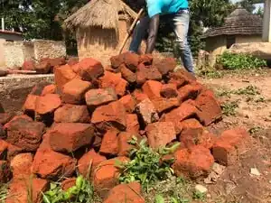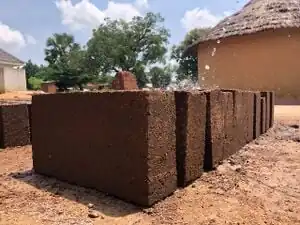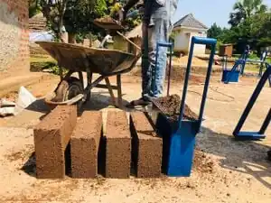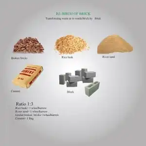 From waste materials to block (e.g materials like broken brick, rich husk and mix together).