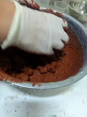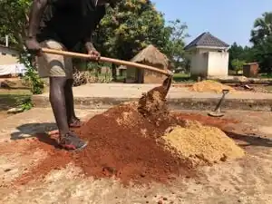 Sand must be dried in the sun or with the help of a drying box, bricks must be crushed mechanically.