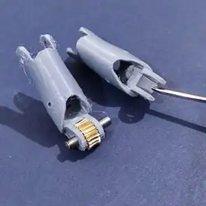 Cut the hub of wheel gears (5 pcs.) using the Dremel tool. One wheel gear will be used uncut as supplied.