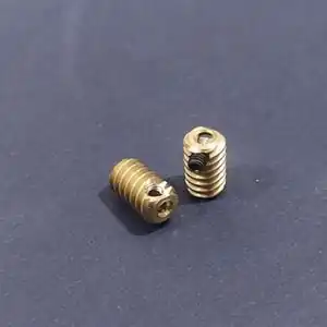 Grind worm gears (6 pcs.) to a flat surface at one end, and then drill a through-hole using 2.5 mm drilling bit. Create a thread using M3 x 0.5 mm tapping bit, and use the M3 x 0.5 mm socket set screws supplied with the gear set