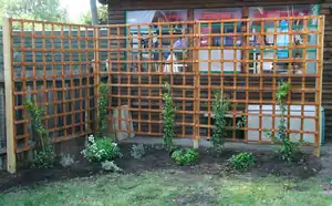 Common materials for trellis include willow, bamboo, pine (often treated), thin wood, metal (wire), monofilament, waterproof synthetic materials and repurposed items. It can be purchased ready-made from hardware stores, garden centres and nurseries, or you can make your own using lightweight yet strong wood. A trellis must be sturdy enough to hold the plant as it grows.