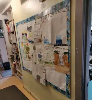 ENGR 215 partnered with Trillium Charter School in Arcata, California, to improve the condition and quality of the school in various ways and provide real-world projects for ENGR 215 students. This particular project seeks to create an entertaining and educational alternative to the relatively unstimulating poster-board featuring old student projects in the same part of the hallway.