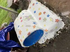This is our base beginning pencil drawing of what we wanted our bench to look like. Given the fact that we were required to use a tube it was important that we draw a ton of options of how we get the tube incorporated into the bench and fully incorporated into the cob as well. We also spent a lot of ton of time deciding on the flower design between flowers or space themed but the children after interviews, revealed they liked the flower idea far more. -