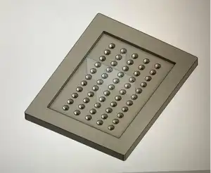 When beginning the prototyping phase we took inspiration from a simple press design. While drawing our different design ideas on paper we came up with the idea to add a drainage system to create a more sustainable and unique paper making press. We first settled on a funnel like drainage system that would allow the water to flow down into a smaller container under the press. When prototyping this we realized that the funnel like structure would give no support to the mesh on the mesh frames when being pressed on. So, we came up with a new design that would allow water to drain while also keeping the integrity of the mesh intact. This design consists of an indent in the bottom piece where the mesh frames will sit and rows of holes inside the indent where the water will drain.
