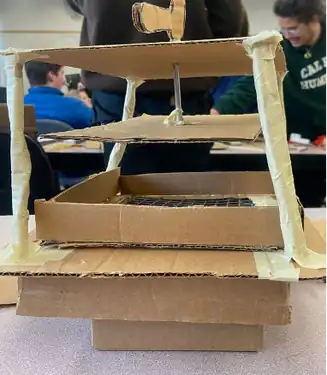 The Paper Making Press took a surprisingly long amount of time and effort to build. We started by prototyping the press with cardboard and tape. During this process we were able to come up with a water drainage design that will help our client and their students collect excess water from the pulp and reuse it.
