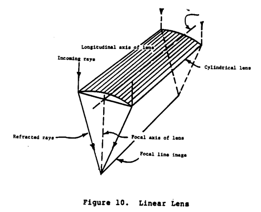 The standard and Fresnel lenses can be fabricated in linear form (Figure 10) with the same cross section as the circular lens but