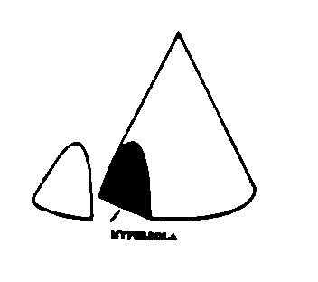 (*) A curve formed by the section of a cone cut by a plane that makes a greater angle with the base than the side of the cone makes.