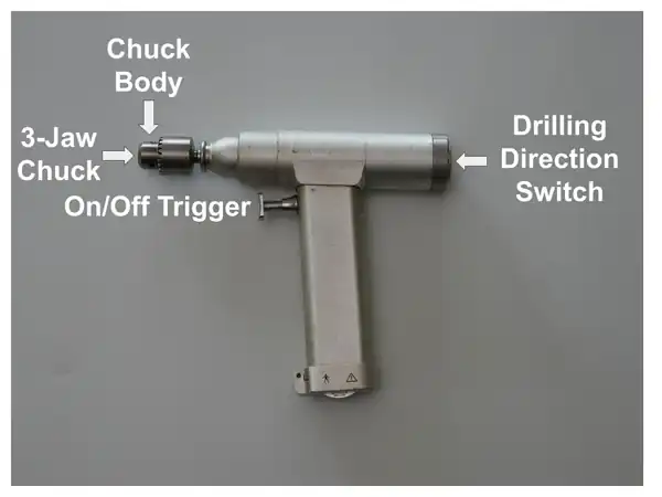 Inserted into the circular opening in the drill chuck body and used to tighten or loosen the 3-jaw chuck over the Schanz screw | Yes | Can be loaned by a local facility that performs orthopedic surgical procedures |