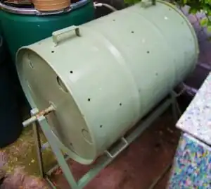 For a quick and unsmelly decomposition its important to supply plenty of oxygen and low levels of moisture so that your pile does not turn anaerobic. Basic designs usually include a box made out of pallets or a box with slits for aeration, however this requires a lot of turning and laborious maintenance. The tumbling composter design allows for compost turning without the resistance faced with pitchfork turning and reduces the labor in compost aeration.