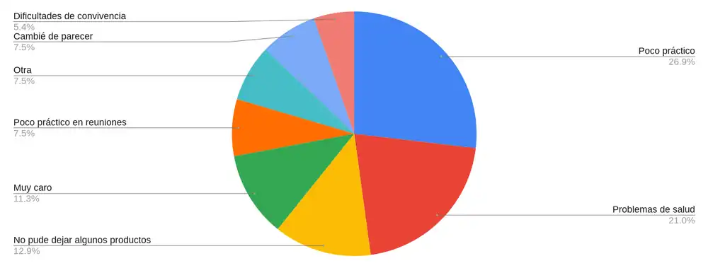 Nota: a mitad de la encuesta cambié la opción "poco práctico" por "poco práctico en reuniones" y "dificultades de convivencia" con la intención de desambiguar.
