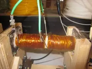 - 14 gauge nichrome wire, coiled around barrel. Secured with heat resistant Kapton tape.