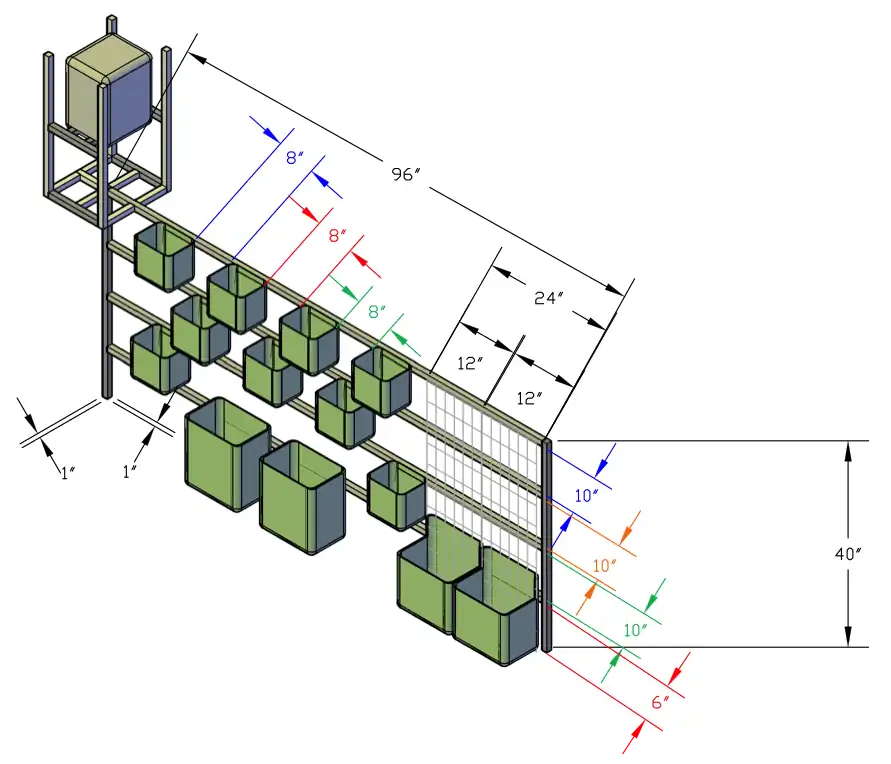 The following sections contain the specifications and details for one 8-foot section of the edible railing structure. When applied to the barge, this 8-foot template will be repeated in fifteen sections to cover the 140-foot perimeter. These sections include a description of the materials, costs, and implementation instructions.