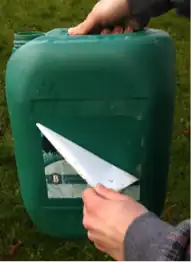 | 5 | Drill 2 holes in either side of the container 1-inch from the top of the container and 1-inch from the backside of the container. A 1/4 inch drill bit should be used for these holes. | ![]() |