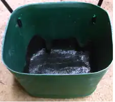 | 3 | Place 9 by 12 inch pieces of weed mat into the bottom and back of each large container. | ![]() |
