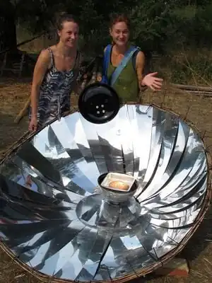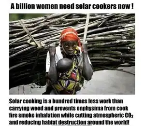 Two billion women spend most of each day walking many miles from their villages to locate firewood for their cook fires, which is then carried back in large heavy bundles. Women tending the cook fires, breath in the smoke and contract emphysema. This type of deep focus-parabolic solar cooker can also pasteurize drinking water that would otherwise have to be heated with firewood or carried long distances from safe deep water wells. Parabolic basket solar cookers require about 100 times less work to use than what has traditionally been the norm for more than half of the women of Earth. This provides for more leisure time which could be spent participating in such things as literacy programs and building local cottage industries (such as solar oven basket weaving) to provide cash income.