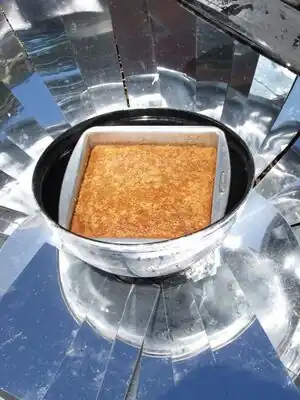 - RESEARCH UPDATE 8-18-2016 The Parabolic Willow Basket Solar Oven bakes a perfect vegan lemon cake at 375of for the first time, on a 96of sunny afternoon in 1.5 hours from 12 noon to 1:30 pm in the testing meadow at Lost Valley. A 2nd baking session yielded one large batch of oatmeal cookies topped with dark chocolate and coconut on the same afternoon.