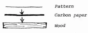 After you have all the tools, wood and work area, the next step is to pick an easy pattern, then transfer it to the block of wood. If you are artistic, you might want to draw directly onto the wood, or you can use carbon paper to trace off the design you like. 1.Place the paper, carbon side down, next to the wood. 2.Place your pattern on top of this. 3.Trace around the pattern. This will transfer it to the wood.