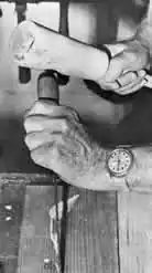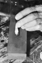 This photo shows how to use the whet stone to sharpen the chisels.