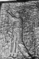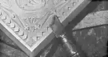 Relief carving-- In relief carving the wood surrounding the pattern is cut away until the figure stands high. The sque and gouge are used to get this effect. Place the gouge on the line of the pattern and cut away from it. The gouge is also used to round the edges of the figures as is the sque.