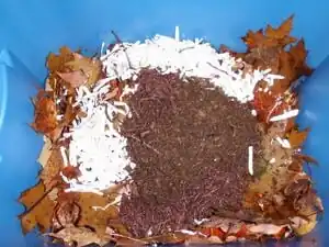 - The third step is to prepare the bedding for the worms. Once the bedding has been chosen (leaves, newspaper, sawdust), start by submerging it in water. Remove the bedding from the water and squeeze out the water. Then take the bedding and lay it in the storage area. There should be roughly 5 cm of bedding across the floor of the storage area. The bin is now ready for worms and composting.