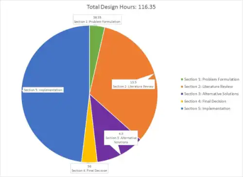 The following figure and tables address the materials used to build the Archimedes Screw Pump, associated costs, design time in hours, and estimated maintenance cost in hours in Figure 3, Table 2, and Table 3, respectively.