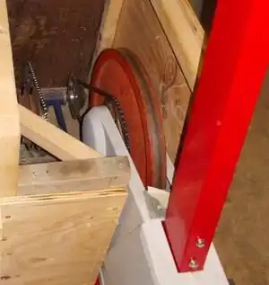 The drive components of Bernoulli's bicycle must be shielded for safety before operation. The blower box has an additional smaller box that covers the drive components and prevents accidental contact with the moving parts. This additional shielding is hinged for bike placement, after which the shield is closed and latched.