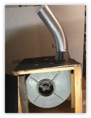 The original design employed a direct friction drive from the flywheel of the exercise bicycle to the pulley of the fan blower. At first there was not enough friction between the two wheels so a layer of rubber was added to the fan pulley to provide a better contact surface. This helped but the fan was still not providing enough airflow. It was also found to be difficult to maintain contact between the flywheel and the pulley. In an attempt to remove the pulley from the fan, so that it could be machined for better contact, part of the pulley broke, shown in the image below.