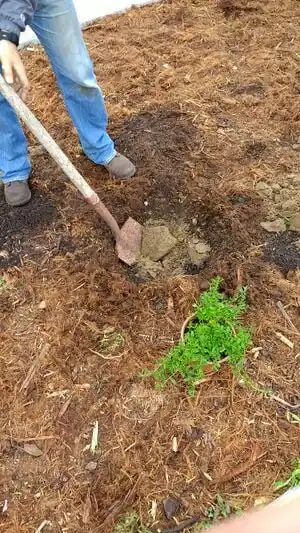 - We removed the mulch using shovels, rakes, and wheelbarrows.