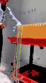 The P.E. Equipment cart is approximately four feet tall and features lower shelving for bucket storage as well as room for other supplies as needs. A top shelf is also included allowing for additional storage and simple access to supplies. The cart's special design is an original Team Enterprise design; around the top sides of the cart are boards on both sides which securely hold the jump ropes. These boards are made from wood and were individual cut out in a tooth like design. It stores jump ropes in the crevasses in between each "tooth"and are held in place by inverted hooks at the bottom side edges of the cart. One simply folds the jump rope in half and hooks the rope below, then holding both handles notch them in the slot above corresponding to the right hook. This design enables the jump ropes to be held and stored without tangling and preventing kinking, allowing for the jump ropes to be in better shape when using and last longer. The cart is simple yet meets all the qualifications from the client.