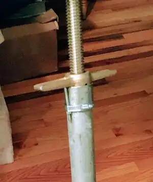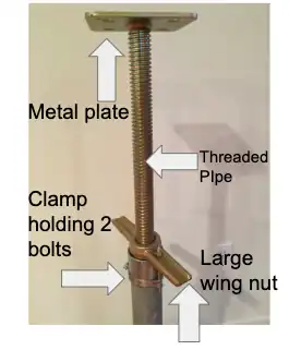 Go out and get a fully threaded pipe with a large wing nut and a plate attached to the top of the pipe. The threaded pipe should be 17-18 inches long.
