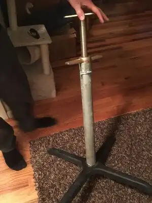 | Threaded pipe goes all the way off | Two person job, one holds the top part of the table while the other guilds the pipe into the hollow pipe to the be twisted back on |