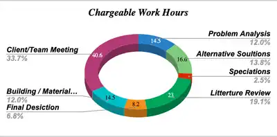 The picture below illustrates a pie chart of the total design costs in terms of hours for the design.