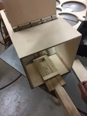 Attach the slider in the center of the box, this will help keep the bellows and lens box leveled. (sliders can be purchased at a local hardware store but for this design we used a custom built slider).