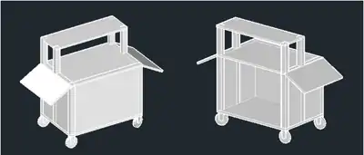 The concession cart is designed to transport snacks and goods across campus in a reliable way. Handles have been implemented into the design to make it efficient for students to push or pull from the storage area to the courtyard where they are to sell the items. In order to make the least amount of trips possible, the cart has been constructed in a way where there are extendable shelves to limit the size while still being able to hold the same amount of stock. While the cart is in motion, the goods will be stored in the bottom and later placed on the shelves the kids will fold up when preparing the cart. A chain will have to be hooked onto the shelf to extend. The cart must be re-stocked with goods as items are purchased. A cover will be placed over the cart to prevent theft from the students.