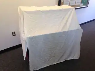 Cover The cover is made out of a reclaimed bedsheet from a thrift store. Its purpose is to hide the merchandise from the children's view in order to prevent the urge to steal the snacks. The cover will be resized to fit snug around the cart. Figure 7 below shows how the cover fits on the cart.